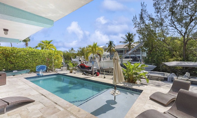 Waterfront getaway w/stunning view, dockage, private pool, ping-pong, gas grill | House in Key Largo