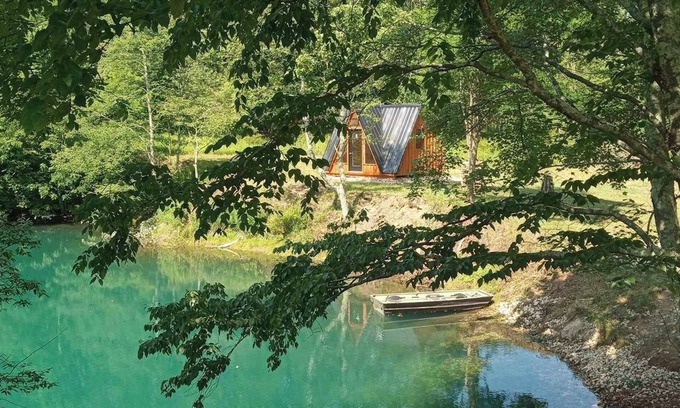 Secluded and serene off grid glamping cabin nestled on a private mountain top blue water lake, The Oasis at Bear Run Farm. Perfect for a romantic getaway! Cabin boasts charm and serenity, waterfront, in the heart of the West Virginia mountain tops! Bring your kayak or use our john boat to explore the crystal clear blue water, take in the picturesque scenery and abundant wildlife! Cabin features a full size bed with premium mattress and fresh linens, as well as a selection of pillows for your ultimate comfort. Charcoal grill, fire pit, solar lighting, picnic table available for your use. For anyone unfamiliar with glamping, think fancy camping. There's is no electricity, running water or Wi-Fi at the waterfront cabin. Cell service depends on your carrier and your specific phone.