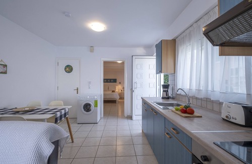 Apartments are front of quite stony private peaceful beach, only few steps away, enjoying your swimming each time. Furthermore the view from the balcony will strike you, especially the sunrise.