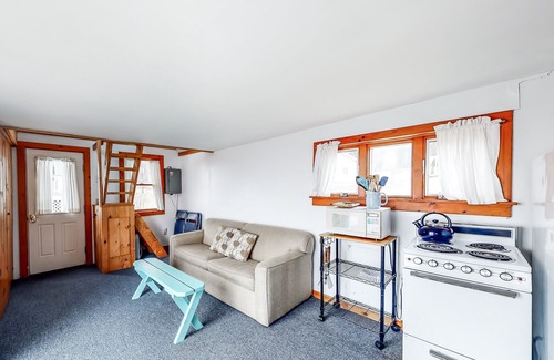 If you're looking for room for the group to be together, yet spread out with private, self-contained spaces, look no further. Dream Harbor House and Cottage combines a studio and house into one perfect vacation rental for the whole family. In the upstairs studio, awaken to a lovely view of the water in the lofted sleeping space. The main house features one private bedroom with a queen, a lofted space with a double bed, and a double sofa bed in the living room.
