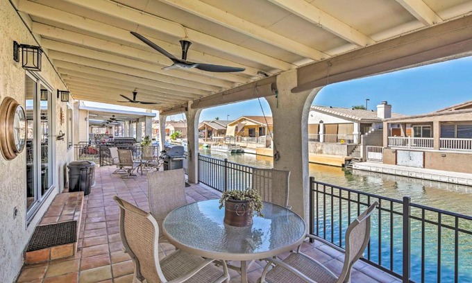 Featuring a bar, Waterfront Home in Parker with Mtn Views and Dock! provides accommodations in Parker. This vacation home features accommodations with a patio. Both parking on-site and free Wifi are accessible at the vacation home. The air-conditioned vacation home consists of 3 bedrooms, a living room, a fully equipped kitchen with a dishwasher and a coffee machine, and 2 bathrooms with a shower and free toiletries. Towels and bed linen are available in the vacation home. The property has an outdoor dining area.