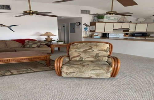 PEAK A BOO BAY VIEWS & QUICK ACCESS TO THE OPEN WATERS; GULF & OCEAN. We’d like to share our home with you. It’s a very spacious and clean 2 bedrooms, 2 bath home with an over sized master bedroom & bath. Cathedral ceiling in spacious living room that includes a queen size sleep sofa.