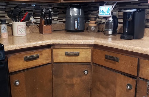 A fully stocked large, open kitchen. Perfect for family dinners, game nights and more. Just pack your bags, gather your family and friends, and enjoy a peaceful getaway today!