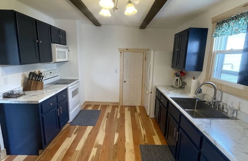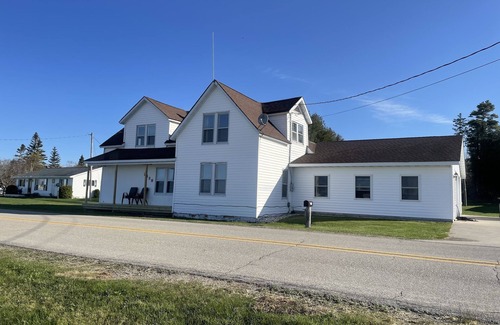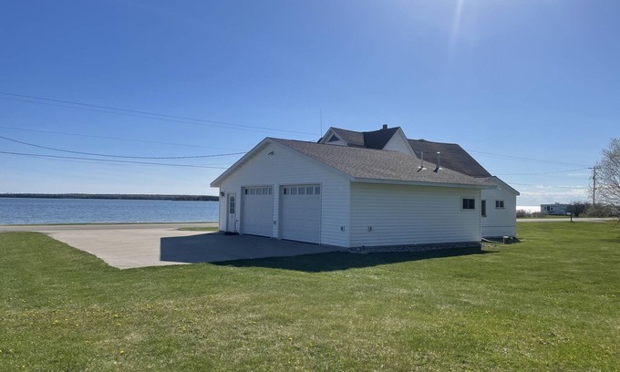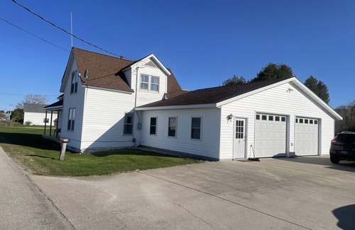 The Saint Martin House has roughly 1750 ft.² of living space including an additional 850 ft.² of garage space. There is a washer and dryer inside and also in the garage. Garage also has separate range for cooking and the sink and cabinets. The property has 280 feet of private beautiful grass lake Michigan frontage. Perfect location for just hanging out or bring your boat and go after some bass, perch, walleye, pike or king salmon. Take your ATV or mountain bike for a cruise on one of the many local trails and there is also a public golf course just down the road. The Garden Peninsula is also a wonderful place to enjoy fall tours and festivities/events at the State Parks. This property offers a very large grass yard and beachfront that is perfect for summer games and bonfires. Multiple islands to boat or kayak around. There are four bedrooms total, three upstairs and one downstairs, two sleeper sofa beds with 1 full bath downstairs and a 3/4 bath in the garage area. This property can sleep 12 to 14 people comfortably, with additional air mattresses and cots available. It has a full kitchen, dining room and living room. The Village of Fairport is a super unique and beautiful place to enjoy.