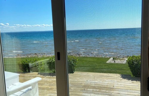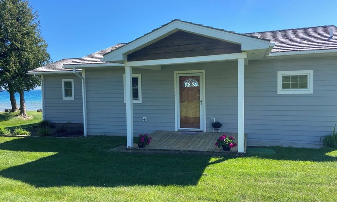 Waterfront home on Lake Michigan with views of St Helena Island Lighthouse | House in St Ignace