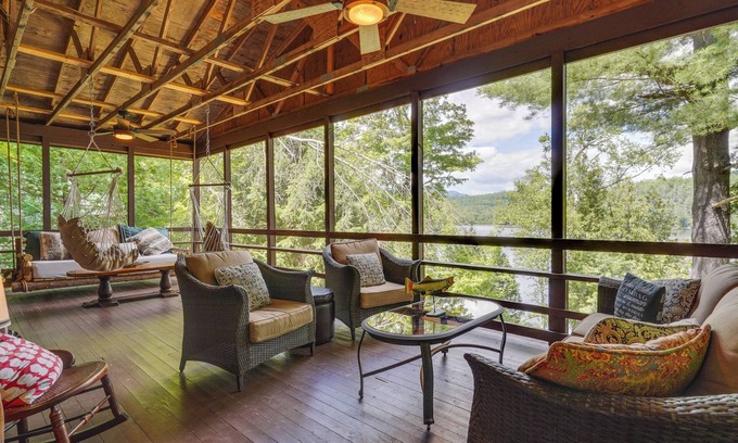 Year-round adventure and relaxation await at this 4-bed, 3-bath Severance vacation rental! During the summer, launch your boat at Paradox Lake Campground and coast along the shore or hike throughout Pharaoh Lake Wilderness Area. Visiting in the winter? Ski at Gore Mountain! Back home, you’ll find an open-concept living space, a screened deck with serene lake views, and a communal grass area perfect for yard games.