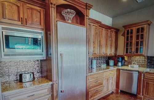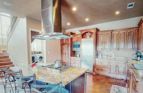 Follow the Texas sun and you'll end up at Stillwater's Paradise, a stunning waterfront home on Cow Bayou, boasting a private pool and panoramic views. Feel like you're at your own private resort when you hang out by the heated pool with a waterfall, in the spa-like jacuzzi, or on the large patio. When you aren't dipping into the turquoise waters, enjoy effortless fishing and boating access.