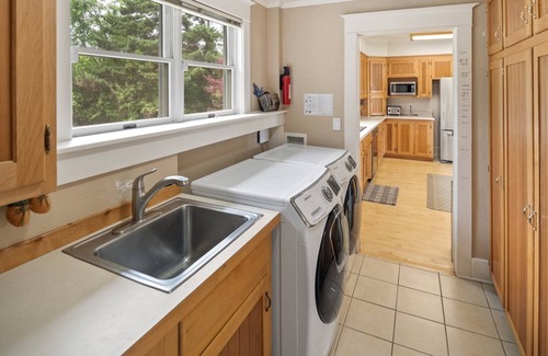 Your stay at this captivating Sandpoint home offers an array of amenities designed for comfort and convenience. Imagine hosting your pre-wedding gatherings in the sun-filled living areas or the elegant glass-encased dining room that overlooks the lush garden and waterfront. The equipped gourmet kitchen features commercial appliances, allowing your caterer to prepare exquisite meals effortlessly. There are ample accommodations for your guests with seven beautifully appointed bedrooms and plenty of common spaces. You'll also love the flat grassy yard that leads down to your private swimming area, providing a perfect spot for outdoor games or simply unwinding after all the wedding excitement.