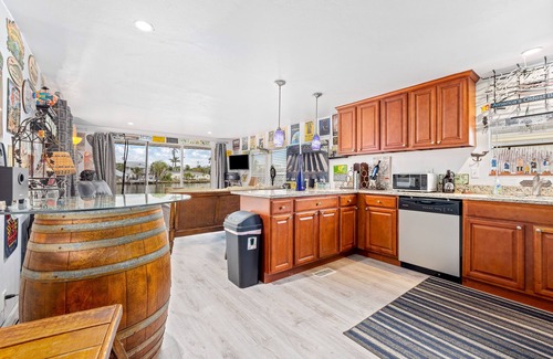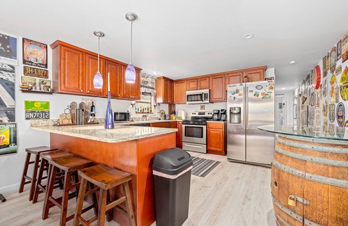 Inside, you’ll find a fun and funky space, featuring an open layout, full, modern kitchen, and lots of artsy touches. Whip up mealtime masterpieces, grab a seat at the breakfast bar or glass-top barrel kitchen table, then pop the dishes in the dishwasher for easy cleanup. After a day of exploration, unwind while you stream the latest release, upload the day’s pics to social media with the free, high-speed WiFi, or unplug entirely with a chilled beverage out of the wine fridge. Let the washer/dryer handle the day’s clothes as you step back outside for a family barbecue on the gas grill, then call it a night in either comfy bedroom. It’s time to make some memories on Marco Island - all that’s left to do is book.