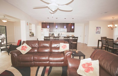 Family getaway in South Florida. Stretch out at this 3 Bedroom 3 full bath home with 1,827 sq. ft. Includes a King bedroom suite, king bed, and 3rd bedroom with 2 twin beds. Newly remodeled and all furnishings included. The canal has a direct connection to Charlotte Harbor with no bridges and a 5-6 ft depth. The pool is enclosed and is professionally maintained. Port Charlotte is near 3 exciting gulf coast beaches; including Boca Grande, Englewood, and Venice. Nearby boat ramp access at Port Charlotte Beach Park. The dock is entirely available for your boat.
