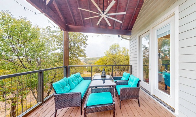 A true focal point of Zen Lakehouse Retreat is the large yoga/meditation deck. This special spot overlooks the lake and is the perfect spot to practice your mindfulness and find your inner peace. Also outside, you'll adore the covered deck with its al fresco dining, and the firepit - ideal for gathering around under the starry night sky.