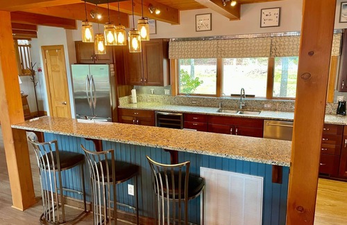 Experience your dream wedding stay at Cedar Sunrise, a stunning waterfront property that offers ample space and luxurious amenities for large gatherings. This unique Post & Beam home is fully equipped for unforgettable wedding celebrations.