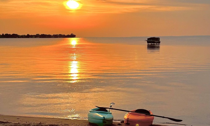 Stunning sunset views from east bay of the Houghton lake with the sandy beach. Recently remodeled with all the items in the kitchen for extended stays. The rental includes 2 kayaks. This cottage has 1 bedroom and 1 bath with a Murphy Bed in the living room for extra sleeping options. Dock is not part of the property and not included in rental.
