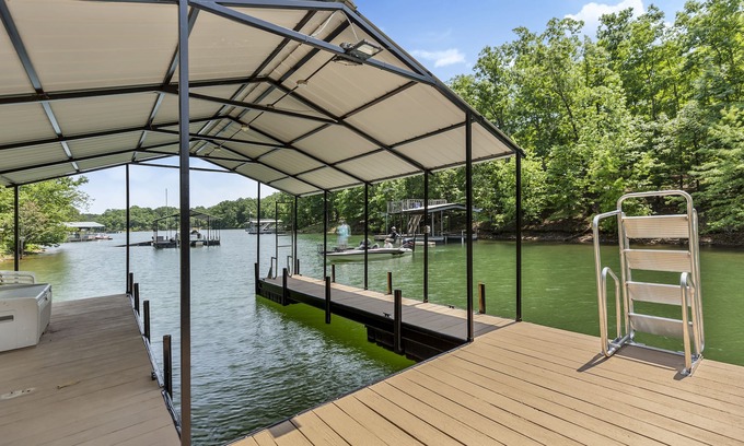 Keep your boat in our covered dock, make use of our provided kayaks, and unwind at night with a board game or movie.