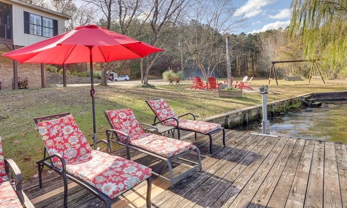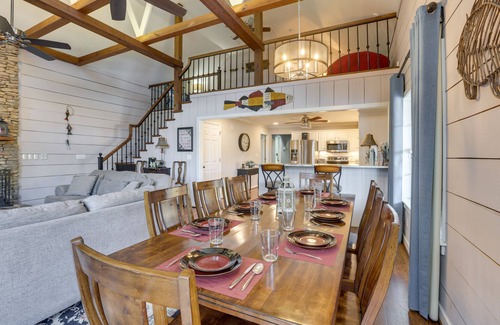 Sitting on the shores of the Lay Lake, this Shelby vacation rental makes for an ideal waterfront retreat! The interior boasts 4 private bedrooms, 4 baths, a sleeping loft and a bright living room. Spend time outdoors relaxing on the spacious deck as you dine at the patio table or soak up the sun on a chaise down by the water. For more outdoor adventure, take a hike through Oak Mountain State Park, descend into the DeSoto Caverns or take a day trip and drive the 50 miles to explore Birmingham!