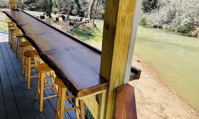 Welcome to the Waterfront Lodge, an exceptional accommodation that is perfect for hosting your dream wedding. This stunning property sleeps up to 22 guests, making it an ideal choice for larger wedding parties looking to celebrate love in a serene and picturesque setting. Nestled in a secluded area just minutes from Ellijay, Georgia, this entirely level lodge offers both privacy and comfort, ensuring your special day is as memorable as possible.
