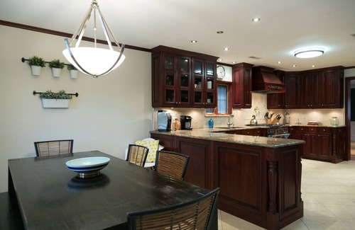 *2 indoor dining areas. Kitchen dining comfortably seats 8. Oversized dining room table w/ bench seats 12 for large family gatherings