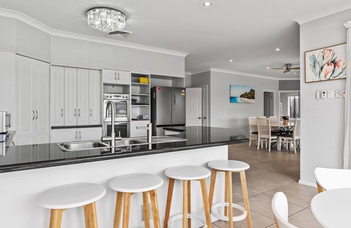 Your stay at this lavish property promises not only romance but also entertainment and relaxation with its incredible amenities. The spacious layout comfortably accommodates large groups, featuring six beautifully appointed bedrooms, including a master suite with an en-suite bathroom. Revel in the tranquility of the landscaped outdoor space, complete with a sparkling swimming pool, relaxing spa, and a covered outdoor kitchen perfect for hosting pre-wedding brunches or evening barbecues. For added fun, challenge your guests to a game of billiards at the pool table as you celebrate the countdown to your big day.