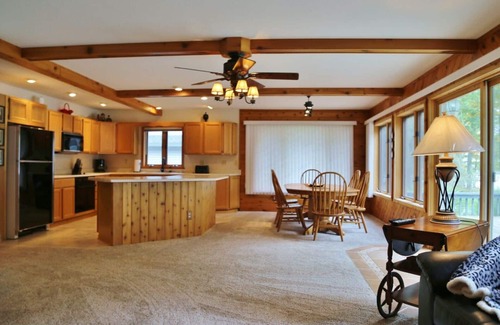 This Luxury Vacation Home has Four Bedrooms, Two Full Baths, Central Air-Conditioning and Over 2,000 square feet of Living Space for up to 14 Guests. Beautifully Decorated and Furnished with Modern Comforts. Located Directly on Hubbard Lake.