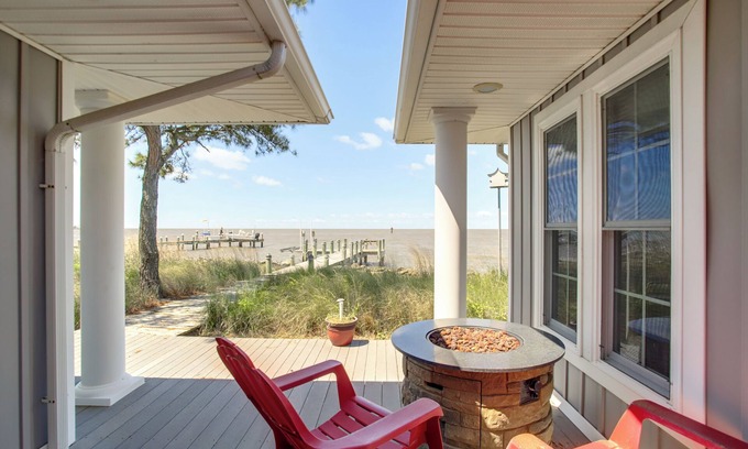 Treat yourself to the tranquility of a rural retreat when you book this coastal cottage vacation rental in Deal Island Historic District, MD! Ideal for large groups and nature lovers, this 3-bedroom, 2-bath getaway offers a peaceful, bayfront location with on-site access to boating, fishing, and crabbing right off the private dock. Gather around the gas fire pit, enveloped in the salty sea breeze, or prepare the day's catch on the charcoal grill! After, cozy up with a movie on the Smart TV.
