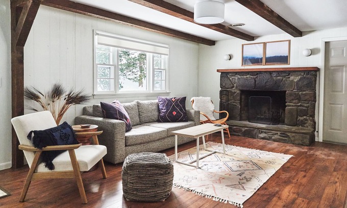 BLAK House is a thoughtfully restored 1960s cabin nestled within one of the most picturesque valleys in the central Catskill Mountains. Laze away next to your own private stream that flows directly through the backyard, and when night falls, crack the windows open and drift off to sleep as the sound of the rushing creek envelops your bedroom.