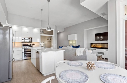The kitchen is a chef's dream, with high-end appliances, ample counter space, and plenty of storage. It’s fully equipped with everything you will need to feel at home. The dining area is a perfect space to share a meal, with the gorgeous waterfront views as your backdrop. We also offer a bar equipped with all the indispensable tools you’ll need to create your evening cocktails (or morning mimosas?)