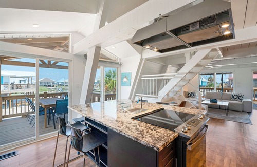 Welcome to Point Breeze, a charming mid-century A-frame set along a serene canal on Dauphin Island, perfect for your next beach getaway. This simplistic A Frame sleeps up to 7 guests and features two bedrooms upstairs, each with a private balcony, creating a peaceful retreat. Downstairs, the master bedroom offers views of the Gulf, comfort and convenience, while the open kitchen and living area invite gatherings and memorable moments. An additional full guest bathroom ensures everyone has ample space. It is important to note that there are no bathtubs, so this property may not be suitable for small children.