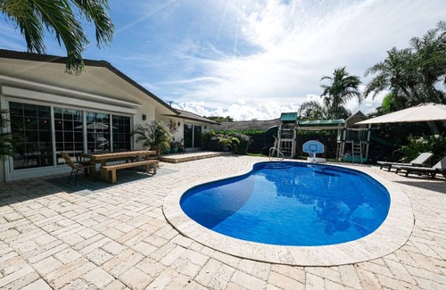 South Florida Waterfront Home! Pull up to the boat dock, jump in the saltwater pool or take an easy walk to the beach, welcome to the salt life! Easy living, in beautiful elite neighborhood, hidden on a private road, in secluded beach town. State of the Art kitchen, or grill outside, take off your shoes, relax, watch the 70' TV, or the sunset outside. 3 Bedrooms, and 3 Bath and everything you need to feel at home.