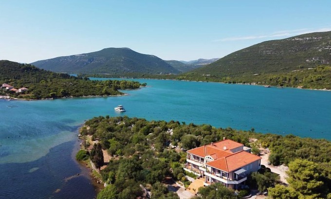 Mali Ston 1 km from Ston: 3-family house "Waterfront Oasis", surrounded by trees. In a secluded, quiet, sunny position, 70 m from the sea. For shared use: property 15'000 m2 with trees. In the house: internet access. 160 m long motor access (via unmade road). Parking (for 2 cars) at the house on the premises. Shop 1.2 km, restaurant 450 m, café 1.2 km, bus stop 1.4 km, concrete beach 70 m. Nearby attractions: Solana Ston 1.5 km. Please note: not suitable for children under 10 years. On request: airport transfer to the holiday accommodation. Owner lives in separate semi-detached house. Airfield 72 km from the property.
