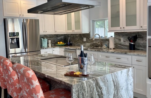 The kitchen is very well stocked and fully equipped including: double sink, full sized refrigerator, dishwasher, range, microwave, Keurig coffee machine, toaster and all the other small appliances, utensils and cookware you will need. Any special requests for any specific small appliances can usually be met with enough notice. We can do your initial grocery shopping (for a small fee) for you prior to your arrival, so you can start your enjoying your vacation the moment you walk in the door. We do provide a complimentary first round of K-Cups for the Keurig. A BBQ gas grill is also provided for your use in the backyard.