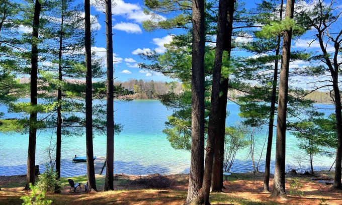 You will NOT believe how beautiful this lake is. Stratton is a glacially formed, spring fed lake. It is So clear and stunning blue-green coloring, you will think you are in the Caribbean! Enjoy relaxing by the water and bonfires at night, sunset views plus amazing star gazing. Bring your boat for fishing, skiing and tubing. Cute kitchen with all of the amenities for indoor cooking, plus a great outdoor dining space with gas grill. Two fire pits (one by the house and one by the water) for smores or campfire cooking.