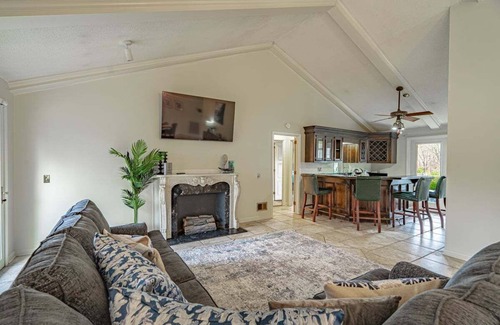 This peaceful, waterfront home has all of the bells and whistles that you have been looking for. This 3 bedroom, 3 bathroom home is great for family gatherings, a romantic getaway or simply wanting to enjoy a peaceful moment. Our clubhouse pool is available! The master bedroom has a king bed and the other two bedrooms have 2 twin beds in each room. If necessary, the master bedroom is interchangeable and could have two twin beds. This request must be made 2 weeks in advance and at time of booking. Enjoy views of the lake as you eat breakfast, enjoy family time in the living room, while entertaining at the bar or from two of the bedrooms.