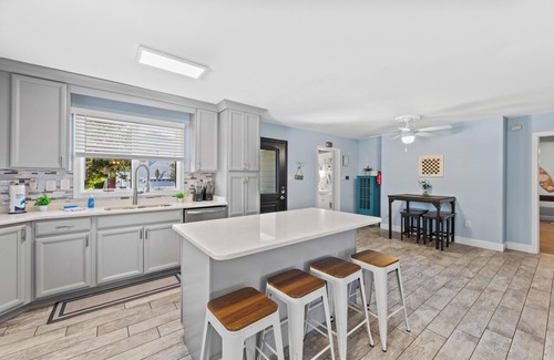 Welcome to the Spacious Renovated Pet Friendly Home w/Game Room, an idyllic setting for your dream wedding. This beautifully renovated property effortlessly combines comfort with elegance, providing ample space for you and your guests. With five bedrooms accommodating up to 14 guests, it promises a memorable experience that blends joyous celebrations with cozy gatherings. Imagine exchanging vows on one of the private patios, surrounded by stunning water views—this home truly epitomizes romance and convenience for your special day.