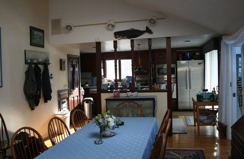 All-season house with 3 bedrooms, 2 baths, living room, dining room, sun room, and large deck. The adjoining guest cottage features 2 bedrooms, 1 bath, kitchenette, deck . Located directly on the rocky coast of John's Bay, facing west with spectacular sunsets. Skylights brighten the house throughout. Choose the in-ground swimming pool (open until mid September) or hot tub at the house, or walk 5 minutes to the white sand Pemaquid Beach.
