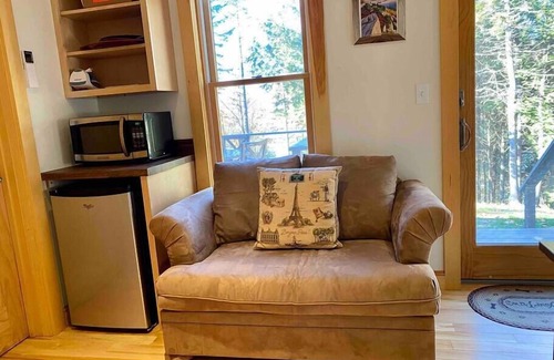 Our guest studio apartment has a private entrance, a king bed, a pull out sofa, a kitchenette, a walk-in shower, and porch facing the water to provide the perfect relaxing coastal Maine experience! Custom built home on 8 acres tucked away in the woods with waterfront access to Harraseeket Cove & South Freeport Harbor, great for kayaking! Located just 5 minutes from LLBean and Freeport's many shops, restaurants, bars, etc. Wolfes Neck State Park and its stunning coastal trails and forests are less than a mile away.