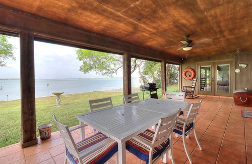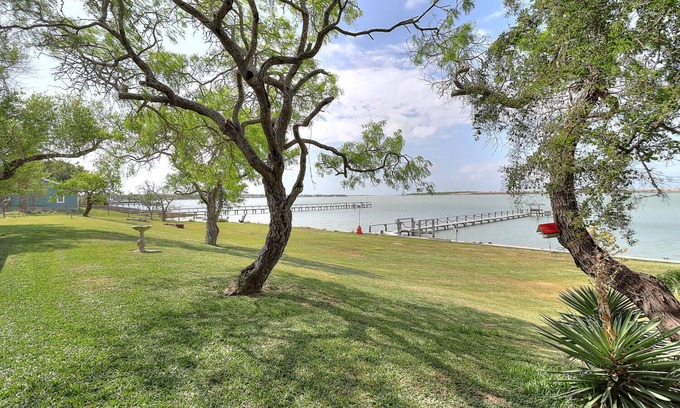 Welcome to Fishermans Hideaway! This waterfront, spacious four bedroom, two and a half bathroom home is situated on three acres. It has a private pier, a bulkhead with cleats to tie the boat up to, and the boat launch is only .3 miles from the property! Fish the waters of Corpus Christi Bay, Ingleside, and Aransas Pass from here. Enjoy sunsets and coastal breezes from the covered patio while taking in the water views. Dine al fresco while watching the lights twinkle on the water. Teach the kiddos to fish or crab from the pier. Sip on a cool beverage while grilling the days catch. Watch the ships as they pass through Corpus Christi Bay.