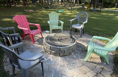 Waterfront property with a private beach and a dock on a Kerr lake. Golf cart, Kayaks, paddle boat, small boat and many inflatables are provided. There is a fire pit with a grill, gas grill, outdoor jacuzzi, pool table, ping-pong table, monkey bars and zip lane for kids, fishpond. You most probably will be greeted by 2 Neighbour's bulldogs but please do not be afraid, they are sweetest dogs you can imagine. The property is located next to the widest, deepest and cleanest part of the lake just a few miles from a boat ramp.
