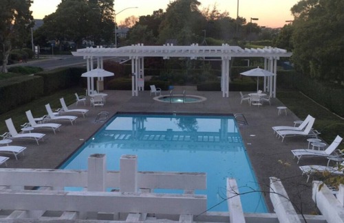 Vacation condo with a spectacular waterfront view (open floor plan of living room, upstairs loft bedroom, and kitchen overlooking the water); imagine living on a houseboat! There are great amenities on premise: 2 heated pools, 2 jacuzzis, a cozy library, a quiet office studio, a game room, a yoga room, a large gymnasium equip with workout machines, and a huge tennis court. Condo is 30 minutes from San Francisco, 15 minutes from University of California, Berkeley, 20 minutes from Oakland. Furthermore, the condo is centrally located where Napa Wine Valley is only 1 hour drive and Lake Tahoe in the mountain is 3 hours drive. Our backyard is the Marina Bay Trail with breathtaking view San Francisco, Bay Bridge, and Golden Gate!