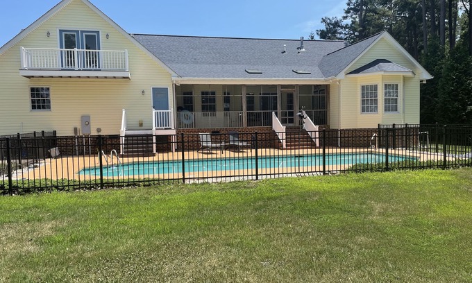 Retreat to this waterfront property on the LaGrange Creek, very close to the Rappahannock River. Relax by the private pool, dock or screened porch. Enjoy the nearby waterways from the provided kayaks, take a bike ride (bikes included) around the farm and check out the grass-fed cattle, enjoy the beautiful sunsets, backyard fire pit w/Adirondack chairs, and dock. The screened porch has a table for 4 and a hanging "egg" chair for relaxing. Plenty of space to hang out. There's even a beautiful pool table, indoor and outdoor games for your enjoyment. Kitchen has basic spices and some essentials, coffee maker (carafe or single cup), toaster oven/air-fryer combo, pressure cooker/slow cooker/rice cooker combo, and high quality appliances. Bath towels, pool towels and bedding are provided. Primary bathroom has a Jacuzzi jetted tub and towel warmer! Washer and dryer and a second fridge included as well.