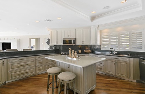 Single- level living on a corner lot. Wonderfully appointed for indoor/outdoor entertaining with an open floorplan and multiple outdoor lounge & dining options. The property features a 150" dock with deep water access, heated outdoor pool, (2) firepits, grill, open floorplan/kitchen. 7 minutes to Deerfield beach (public access). Bikes, beach chairs, paddleboards, and pack & play upon request.