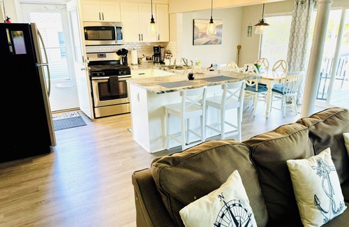 Newly renovated and waterfront! This super cute and charming 2 bedroom cottage, boasts a king in the master, 2 full baths and it’s own laundry! Just steps away from the water with a free dock space with rental. Enjoy your family getaway with your boat or rent one from a nearby marina!