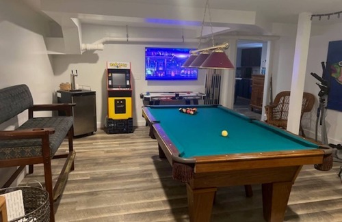 Game room includes, sitting room, kitchenette, popcorn maker, pool table, air hockey machine, Pac Man arcade machine, 2-TV's, treadmill and Stairmaster for entertainment and relaxation.