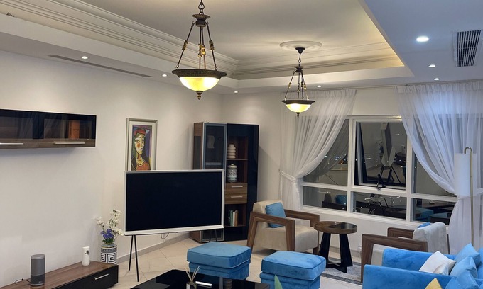 With a relaxing beach view , the apartment luxurious Royal suite accommodates up-to 10 guests per night , very ideal for family !