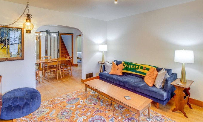 This Shawano Lake vacation rental’s charming interior and versatile location is ideal for a convenient family trip. Check out Navarino State Wildlife Area, USAIR Motorsports Raceway, and Golden Sands Golf Community nearby, or simply fish all day while your boat drifts peacefully towards the main body of the lake. Head back to grill your catch on the patio of this 3-bedroom, 1-bath house before curling up by a Smart TV — the kids will love the 2nd level of sleeping arrangements!