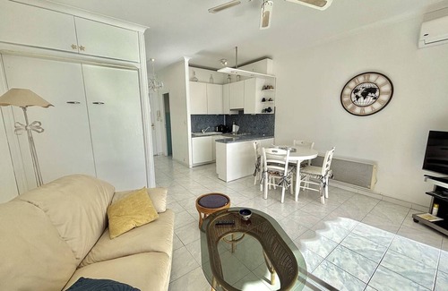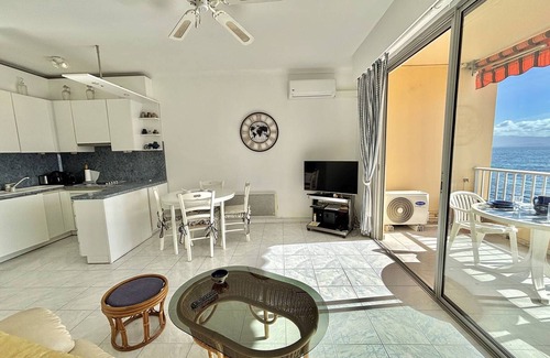 The apartment is composed of: an entrance, the air-conditioned living room with retractable bed, an equipped kitchen open to the living-dining room opening onto the terrace with sea view, an independent bathroom with WC.