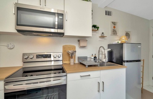 This recently remodeled 1 bed 1 bath studio offers a blend of modern comfort and serene beauty. Located right on the water, you'll have access to the kayaks, dock, boat ramp, and fire pit. It is common to see all kinds of wildlife including manatees, dolphins, and fish. Fully furnished and equipped with a complete kitchen. The only shared space is the backyard.