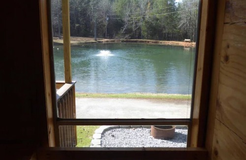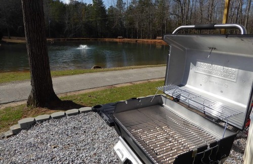 Make a fire in the fire pit, grill some dinner on the commercial gas grill, sit back on the porch, and watch the ducks frolic in the pond. This Tiny House is located in a premier quiet-but-lively family owned and operated Campground right outside of Spartanburg, SC. On site we have a fishing pond, swimming pool, jump pad, game room, walking/biking trails, horseshoes, corn hole, pavilion, snack bar, firewood, and free WiFi.