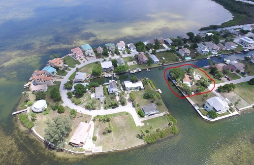 If you are looking for a waterfront vacation with a Key West feel, then this is your destination. LOCATION, LOCATION, LOCATION! This home is located toward the end of the exclusive peninsula of Driftwood Isles and is at the end of the road. Once you arrive you will notice that the house is spread over two lots with vacant lots on both sides. Beautiful canals border two sides of the property. If privacy is what you want then this is it.