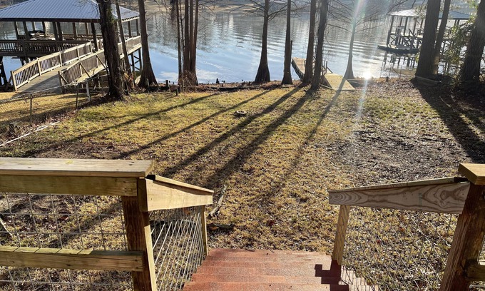 There is a boat launch three lots down from the property that is usable at least as low as 165 water level. Also, it’s five minutes from Ole Yeller/1215 launch, and only 15 minutes from Toledo town. Zwolle is only 15 minutes as well. Five minutes from Shell Station. Ample space to park a boat, and has outdoor outlet for charging.