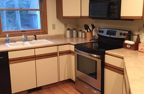 This house has 2 identical bedrooms with queen beds and walk-in closets, one on each floor. There is also an open area sleeping loft with 1 Queen bed and 2 twin-sized beds (bunk beds) with access to the second-floor bath. The master bedroom is on the second floor with private access to the second-floor bathroom and shower. The first-floor bedroom is adjacent to the main floor full bath with laundry. Our kitchen is fully equipped with new appliances and features a breakfast bar. A 50-inch screen TV is centrally located in the great room with cable, a DVD player and a Playstation 3. In season there is also a bonus game room across the street equipped for video games and Foosball.